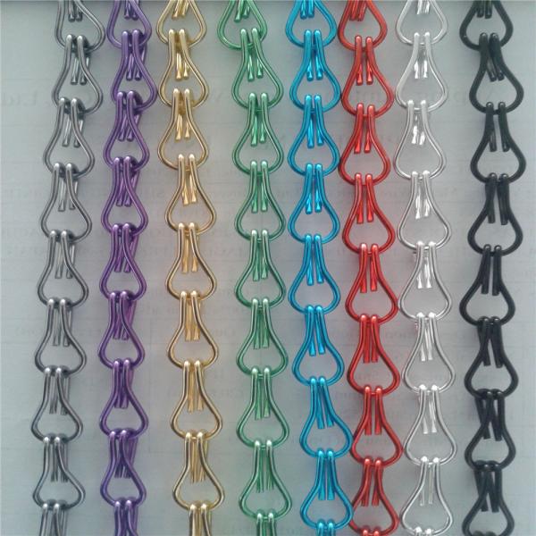 Our chain curtains are available in silver, red, blue, green, black, gold and bronze.